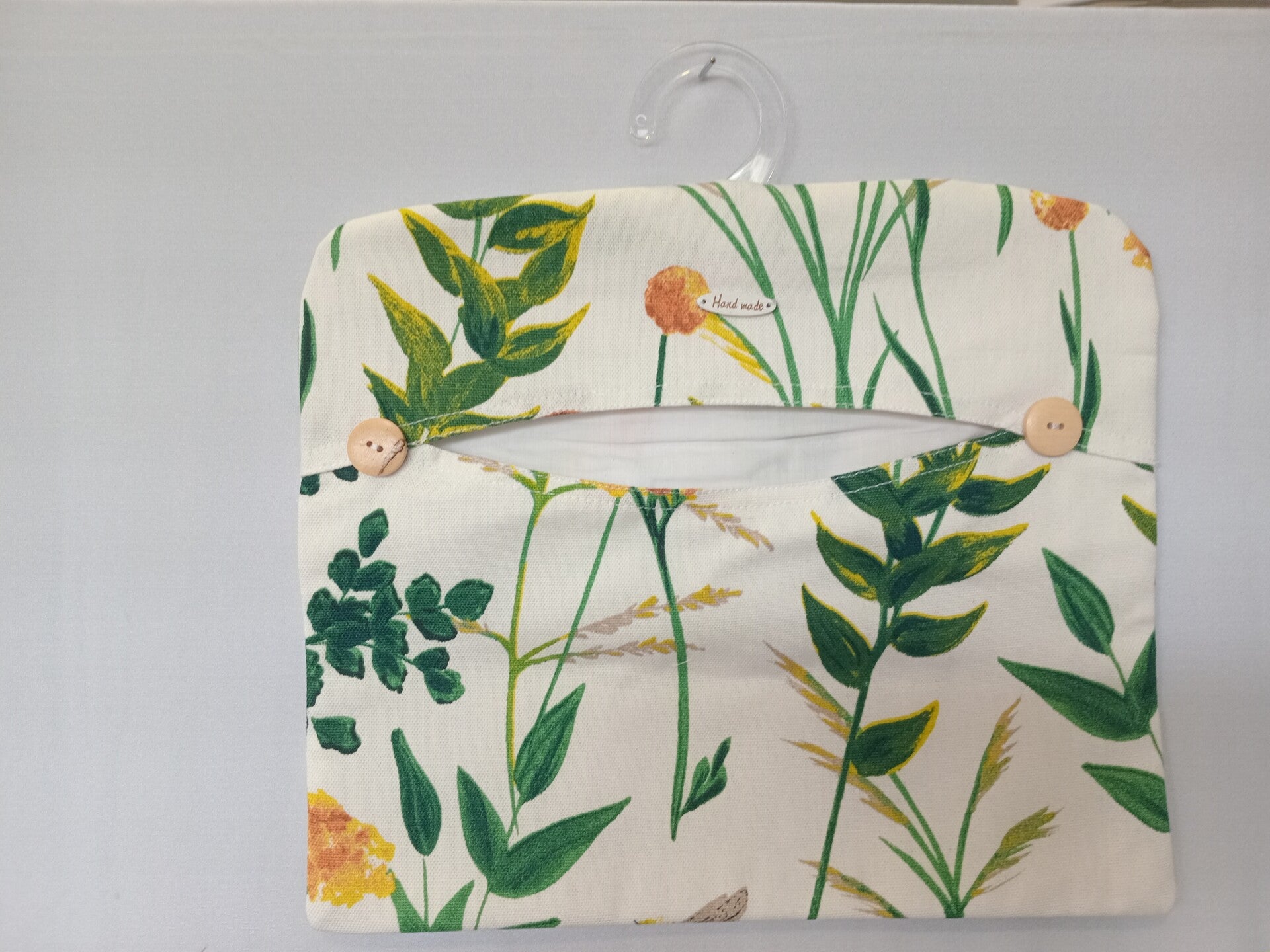 A bag for clothes pegs made of recycled cotton fabric, on a recycled hanger, intended for household use, very comfortable, perfect as a gift for yourself or for others ;o)